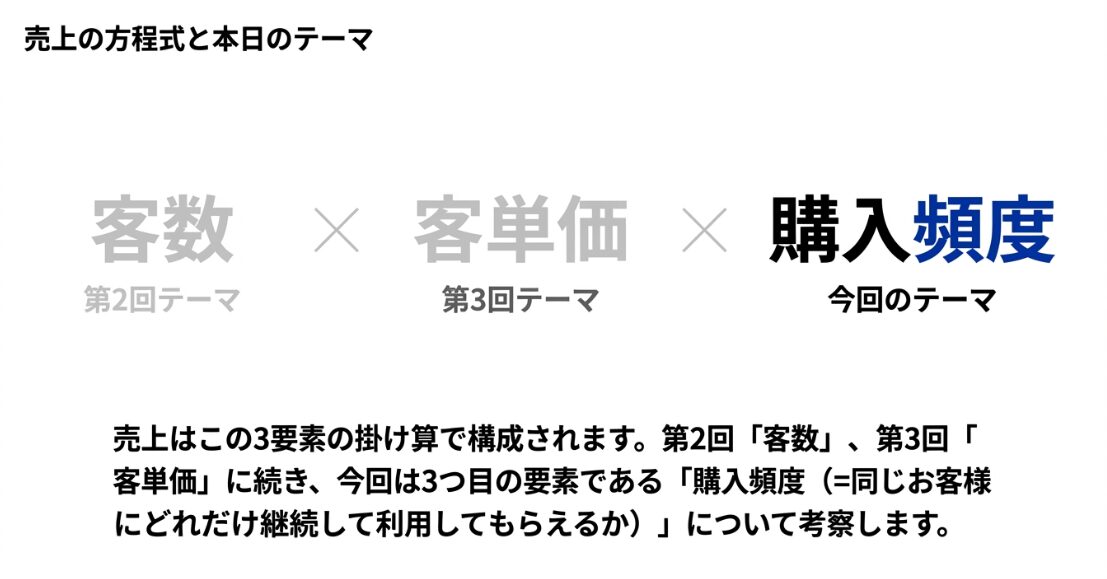 「購入頻度」=同じお客様に、どれだけ継続して利用してもらえるか